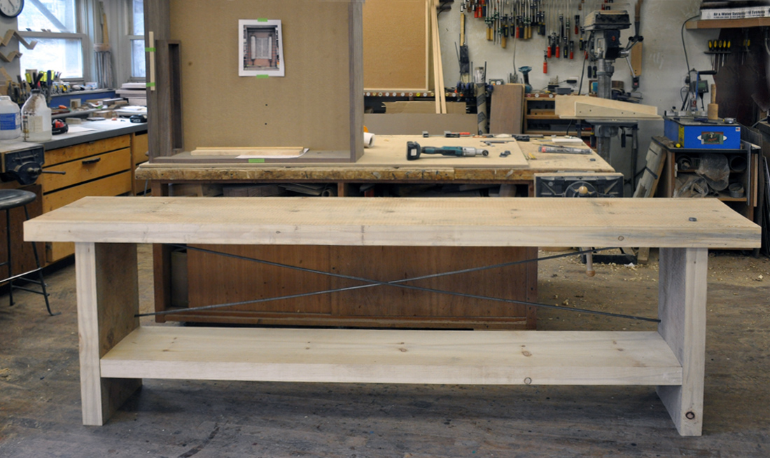 this piece was designed to make use of some pine planks sawn from a blowdown on the client''s property.. the cabine it is going in will be sophisticated, but rustic, and when we figure out how to finish this piece, i am sure it will fit right in .. the metal work design with the