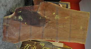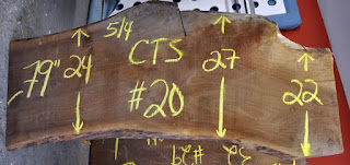 the trout desk, dovetailing 28" wide walnut planks, 'houndstooth' dovetails, and more, and below,