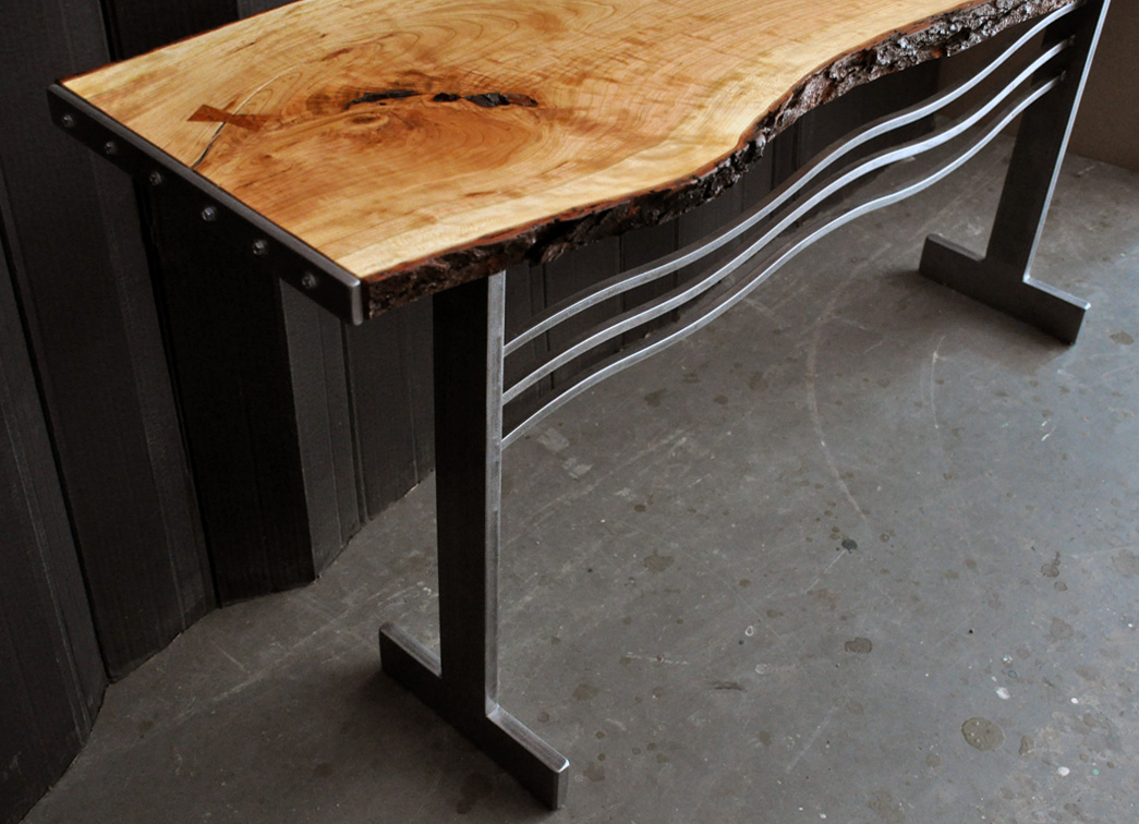 and combined them into the finished piece... the steel end pieces were originally 'temporary' to keep the top piece flat while we worked on it, but we all liked them, so they stayed as part of the finished design.