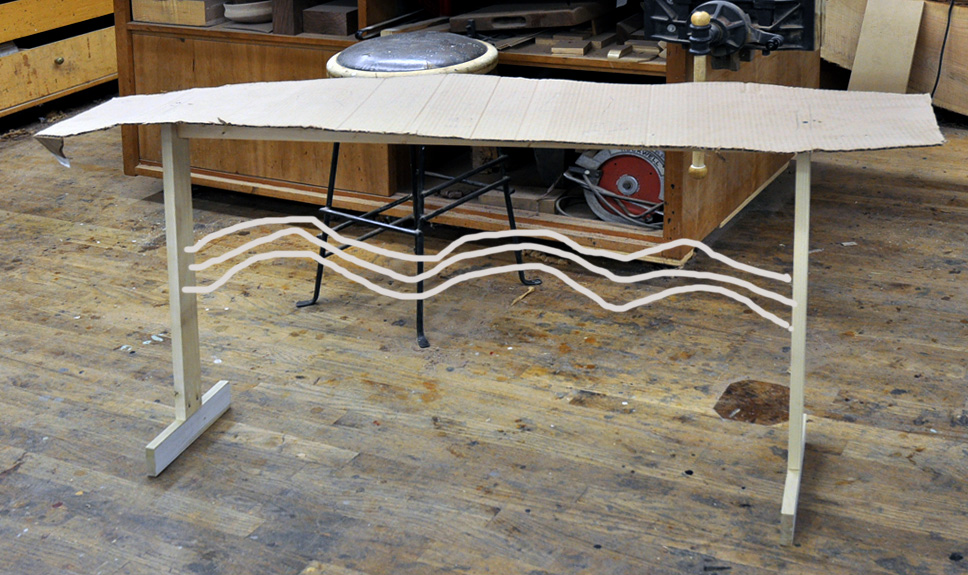 the concept started as a full length bench, but after taking the mockup home with them, they decided a behind the couch console table would be more appropriate.