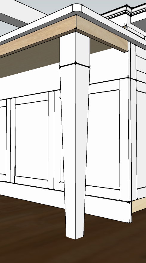 the construction of the base was straightforward mortise and tenon and the leg style was based on a drawing the client's architect sent us of the leg on the new kitchen island.