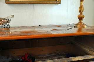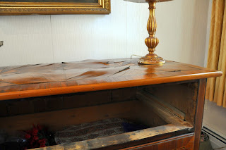 with their original finish back flat onto the original top. i'll be installing it back on the bureau on friday morning. the owner came by yesterday to see it and she was totally thrilled ... i think i made hero status, for her at least. below are a series of photos