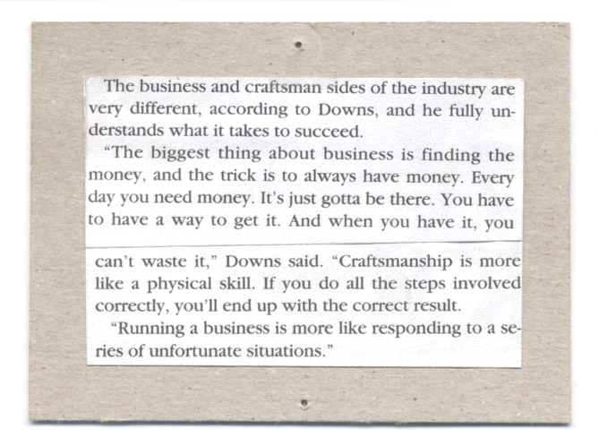 I had a wonderful conversation the other day with an old friend about the current vagaries of the custom work business ... the slow pay .. the almost order that takes as long and is as complicated as the real order, the lack of choice caused by the lack of demand, and it all boiled down to cash flow. Things do seem to be picking up though recently, (dare I even say it????) The above quote from Paul Downs, a Philadelphia furniture maker who was interviewed a few years ago by, I think, Woodshop News is a true thing. His quote above resonated with me as it has been the back story of my 31 years in business ... So true ... We like the 'craftsmanship', but we also need to do the money stuff. ... almost everyday ...